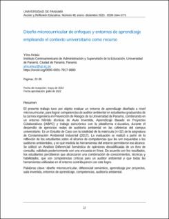 El presente trabajo tuvo por objeto evaluar un entorno de aprendizaje diseñado a nivel microcurricular, para lograr competencias de auditor ambiental en estudiantes graduandos de la carrera ingeniería en Prevención de Riesgos de la Universidad de Panamá, combinando en un entorno híbrido técnicas de Aula Invertida, Aprendizaje Basado en Proyectos Colaborativos (ABPC) y trabajo asincrónico con la plataforma e-ducativa, durante el desarrollo de ejercicios reales de auditoría ambiental en las cafeterías del campus universitario. Es un Estudio de Caso con la totalidad de la matrícula (n=32) de la asignatura de Contaminación Ambiental Industrial (2017). La evaluación se realizó a partir de la reflexión de los estudiantes sobre el alcance de competencias que les son requeridas a los auditores ambientales, y en qué medida las herramientas del entorno permitieron ese alcance. Se utilizó un Análisis Diferencial Semántico de opiniones decodificadas de un foro de consulta, validado posteriormente con una encuesta en línea. De acuerdo con los resultados, los estudiantes percibieron que alcanzaron una combinación de conocimientos, técnicas y habilidades, que son competencias críticas para un auditor ambiental y que todas las herramientas utilizadas en el entorno contribuyeron con este logro.